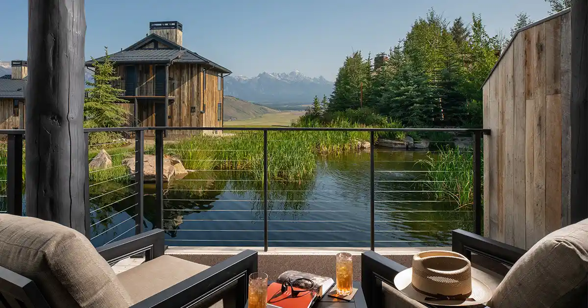 Enjoy the stunning views of the impressive Grand Teton and our tranquil pond from the comfort of our lavish Grand Reflection Suites, providing a true connection with the natural elements surrounding our hotel. These luxurious suites feature a combined bedroom and living area with a plush king bed, elegant sitting area, gas fireplace, and opulent Calacatta marble bathroom complete with a spa soaking tub to unwind and enjoy the unrivaled view after a day of exploring Jackson Hole.